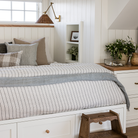 Our new Blake Linen collection features an interwoven stripe texture, giving a modern refresh to a traditional stripe. Our duvet cover and shams are hand-loomed by artisans and the linen is washed for a relaxed lived-in look. The melange of textures within this woven bedding elevates your space to a sophisticated, yet relaxing retreat.