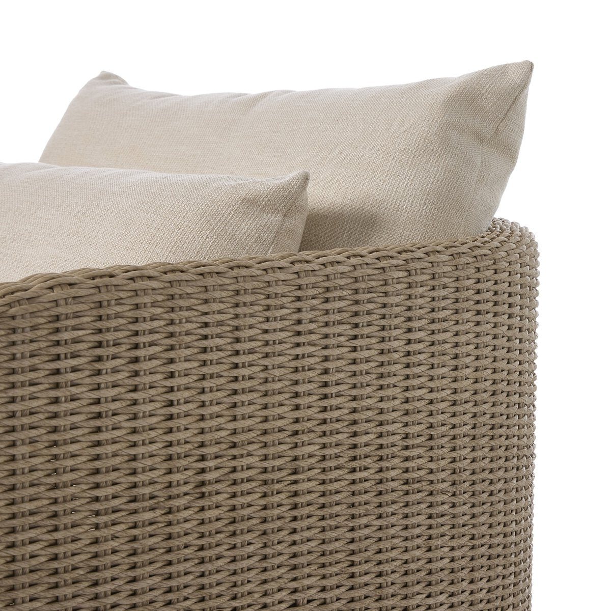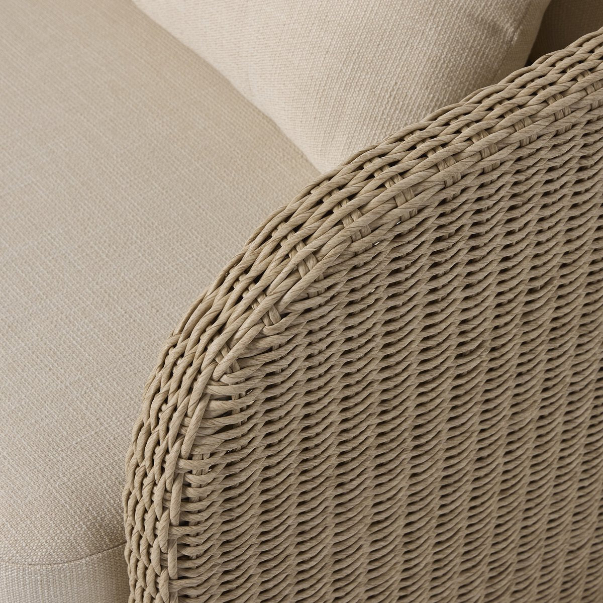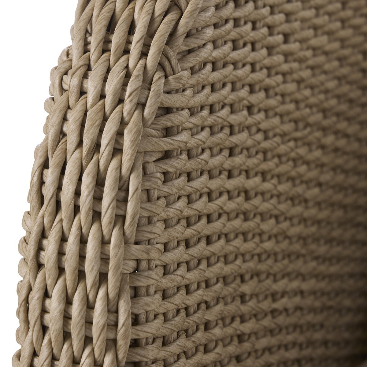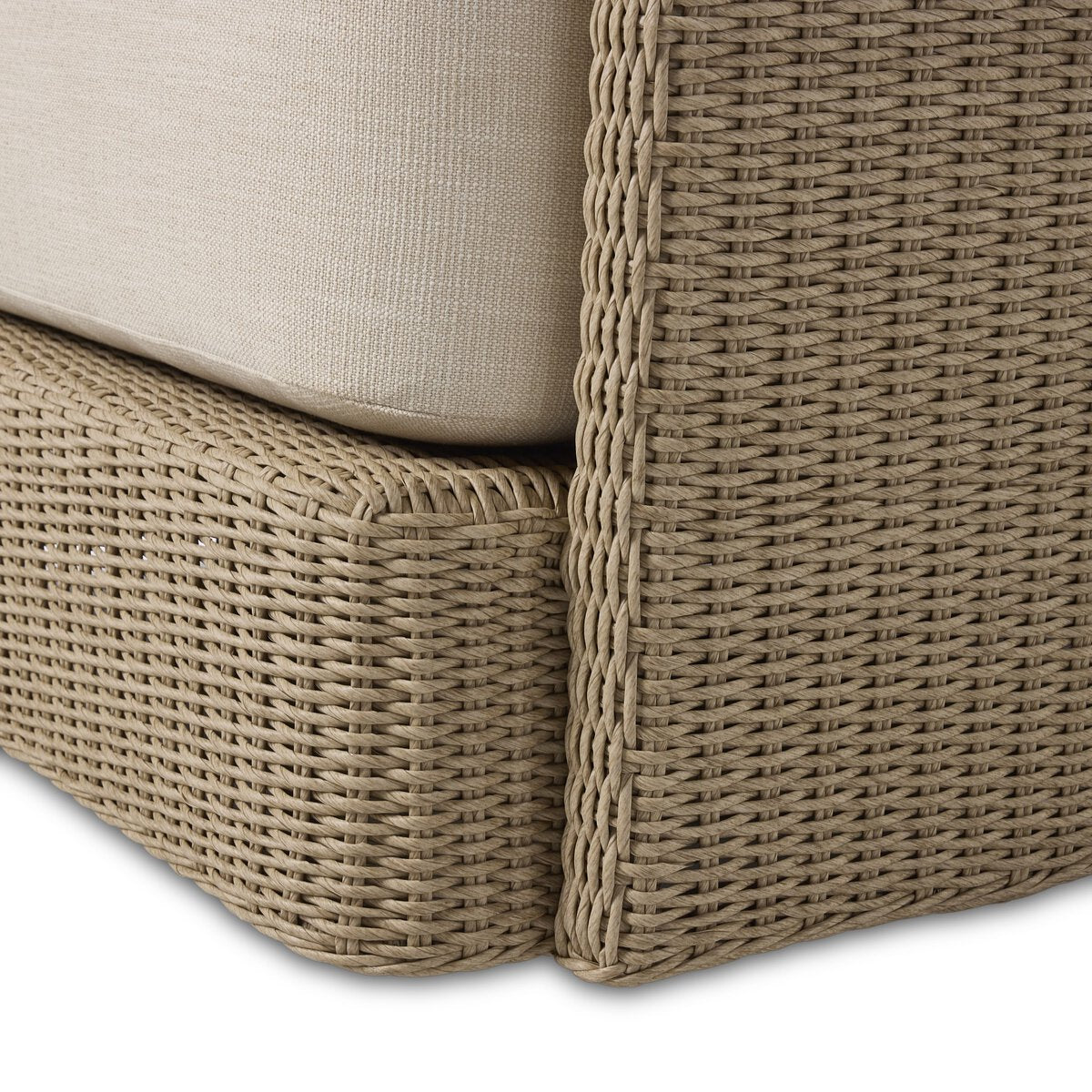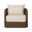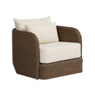 A beautifully textured outdoor swivel chair designed for relaxed, everyday lounging. The fully woven barrel-back silhouette feels sculptural and inviting, while soft linen-like cushions add comfort and a light, tonal finish. With a smooth 360° swivel, it’s perfect for covered patios and outdoor seating areas—bringing an effortless, collected look to the space.