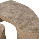 The Tavira Coffee Table brings effortless warmth and elevated texture to your living space. A hand-cut, laminated mocha stone top rests atop a beautifully hand-woven lampakanay base, creating a sculptural silhouette that feels both grounded and airy. The rich brown stone features natural microfossil and calcite markings, making each table subtly one-of-a-kind. Perfect for anchoring a relaxed seating area, Peralta pairs beautifully with soft neutrals, layered textiles, and collected decor for a timeless feel.