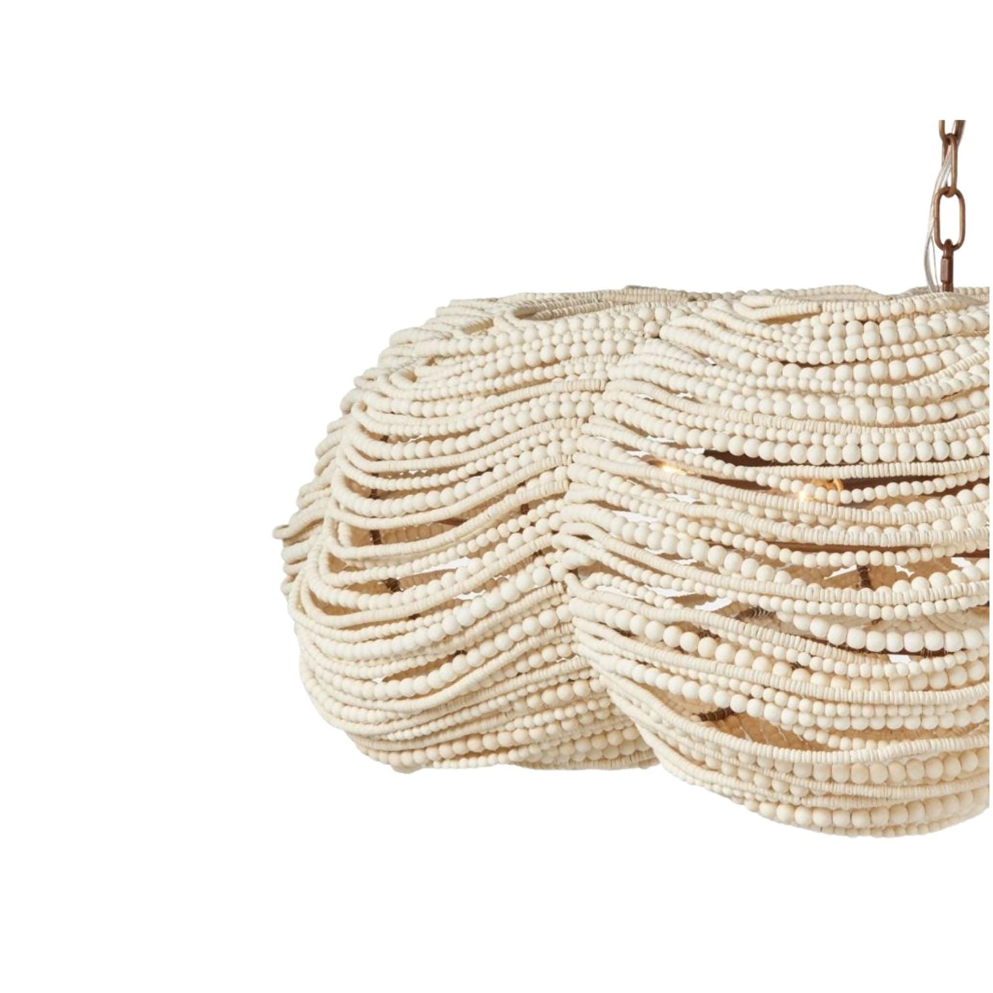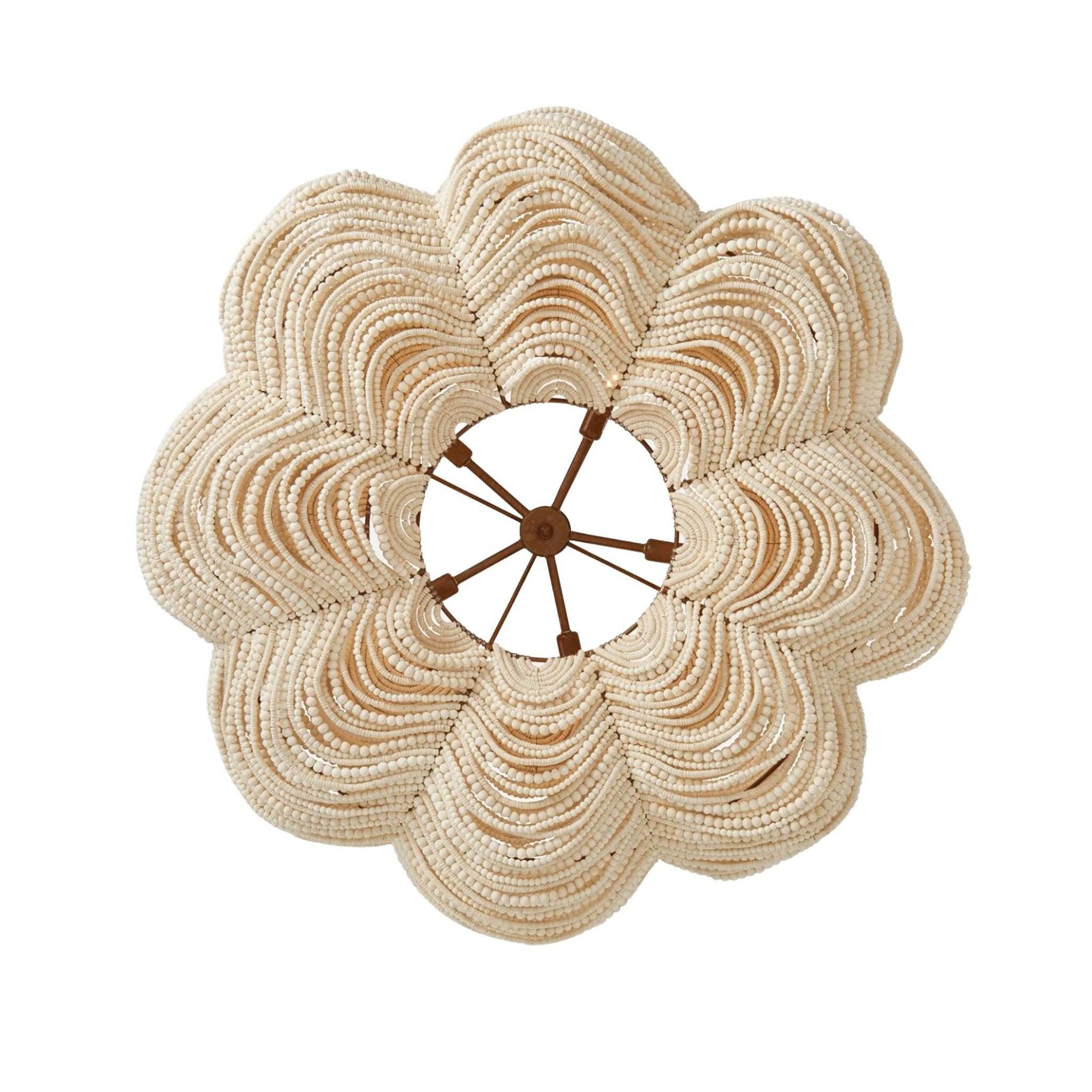 The Kali Pendant is finished with an oversized clover bowl chandelier in shape-shifting wood beads.