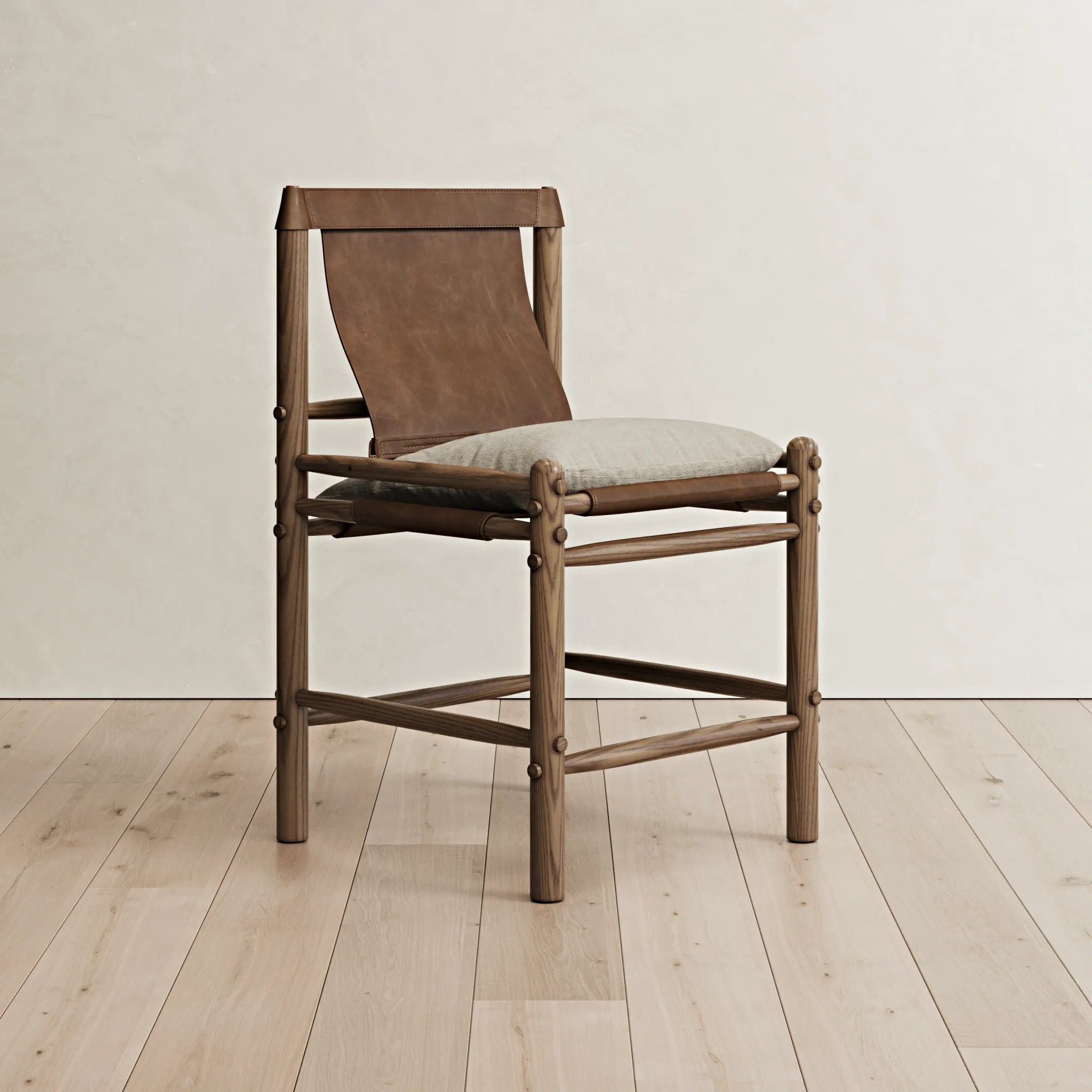 In a unique marriage of materials, our made to order Stevie Stool brings texture and shape into your spaces in both counter and bar stool heights. Offered in a mix of wood frame finishes, leather tones for the sling back and arms, and a one-of-a-kind kilim cushion, the Stevie Stool allows you to customize your look to suit your exact style and taste.