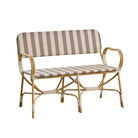 The Albini Bistro Bench brings Parisian café charm to your space with its woven striped seat and graceful curved arms. Crafted on a faux bamboo frame, it offers a playful yet timeless design perfect for patios, breakfast nooks, or cozy corners.